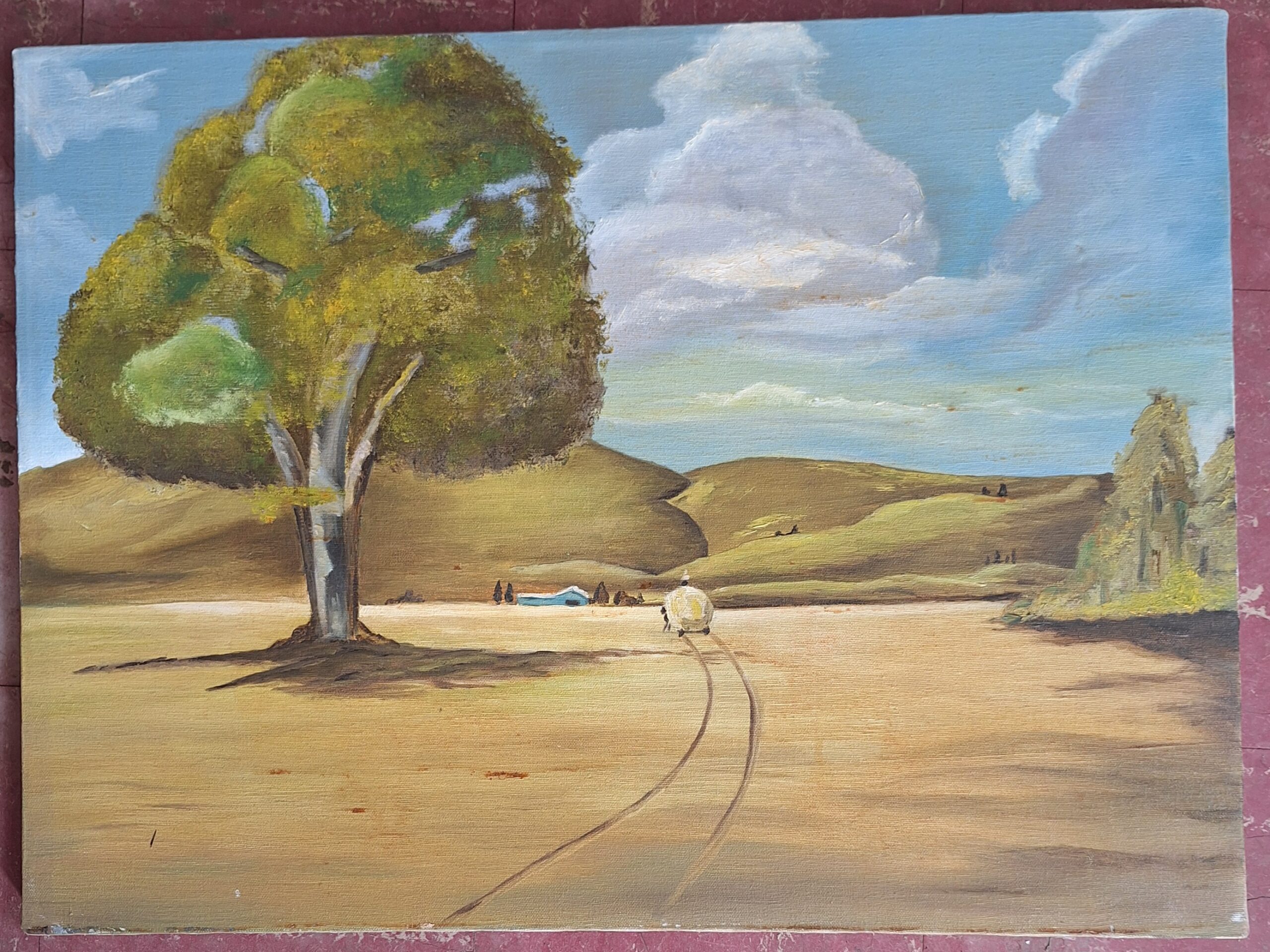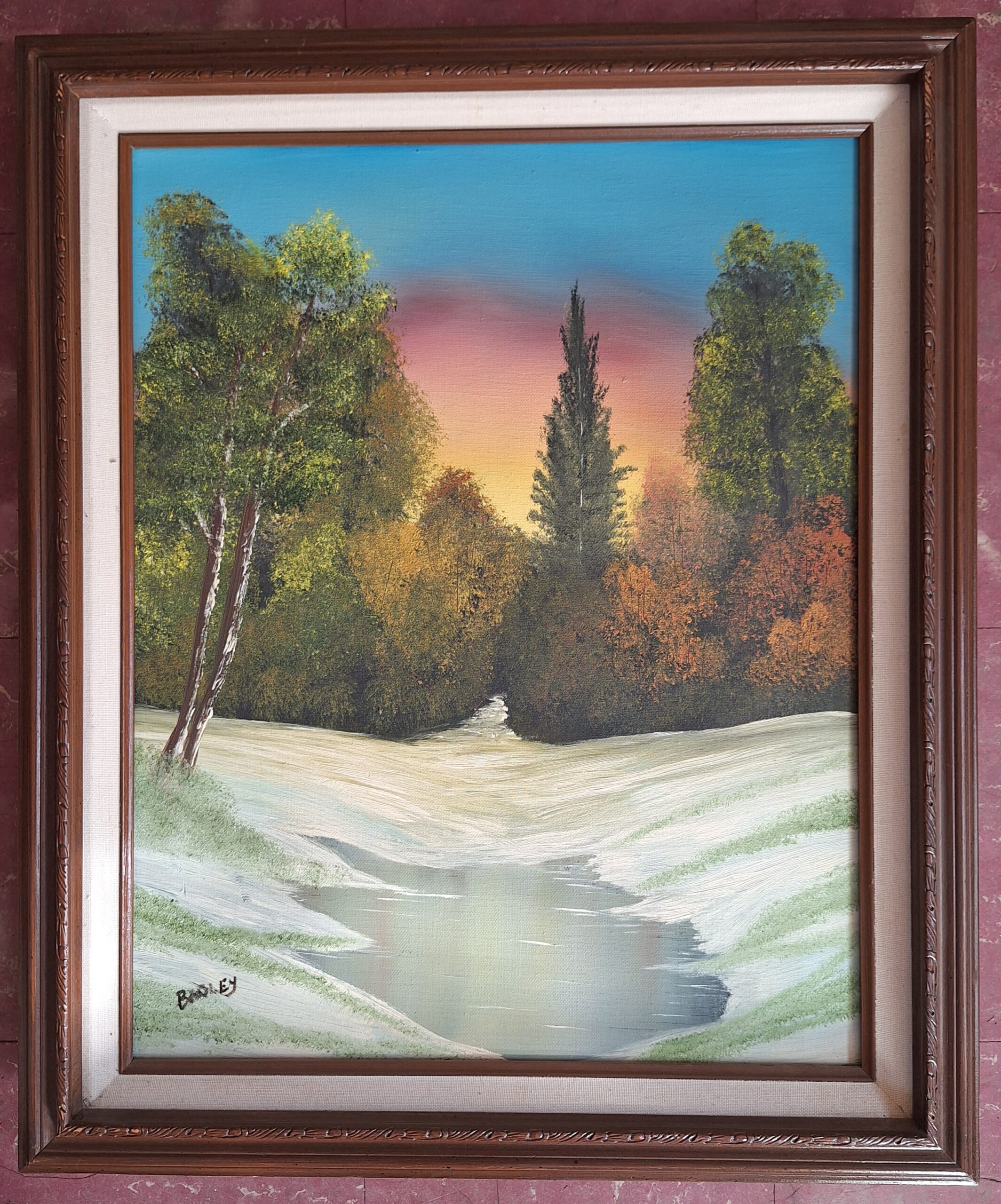 19 in wide by 15 in tall nothing special about this painting, frame and painting are in good shape signed no date.