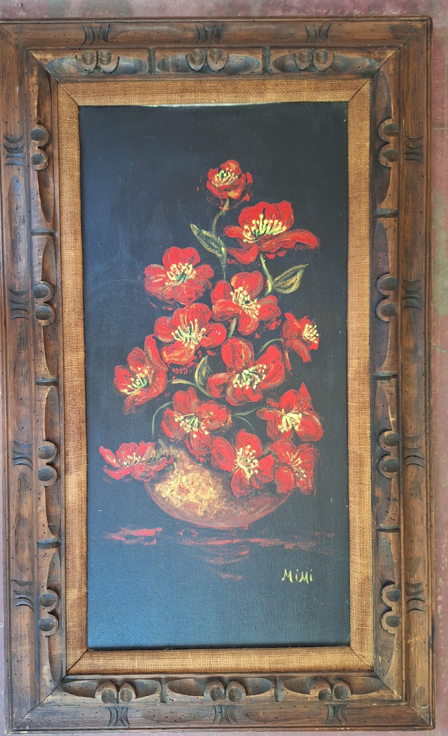 30 in wide by 35 and 1/2 in tall. An excellent condition. The frame has a couple of small scuffs. Signed but not dated.