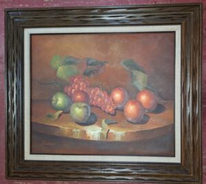 32 and 1/2 in wide 28 and 1/2 in tall painting and frame are in excellent condition it’s a beautiful frame signed but no date.