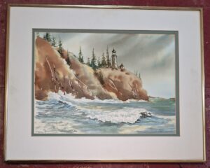 20 and 1/4 in wide by 16 and 1/4 inches tall. It’s a real pretty frame but nothing special it’s a watercolor signed, artist name on the back and description of painting. Point conception at the mouth of the Columbia River.