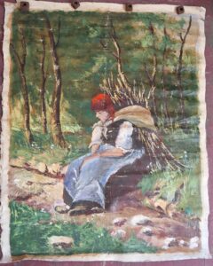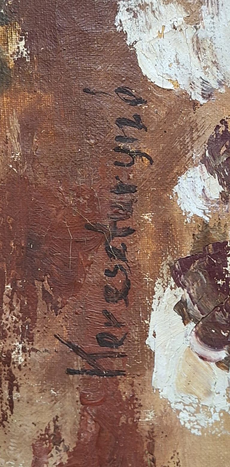 24 in wide by 32 in tall. Really old painting it’s just rolled up canvas no frame signed and the signature does not look American.