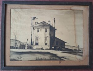 19 and 1/2 in wide by 14 and 1/2 in tall. A really old black and white watercolor signed and dated 1969.